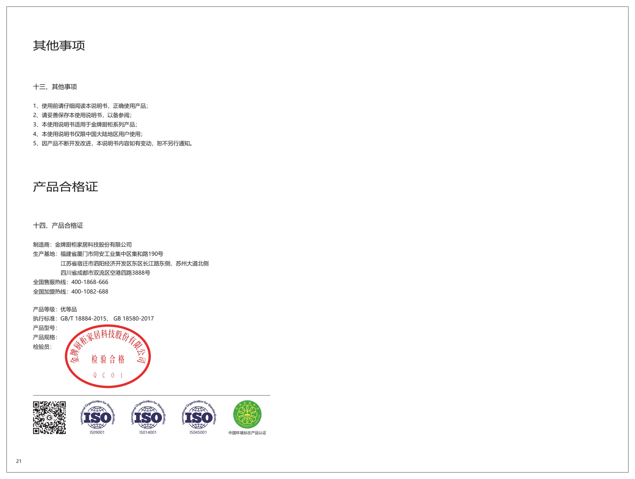 凱發天生一觸即發廚柜使用說明書